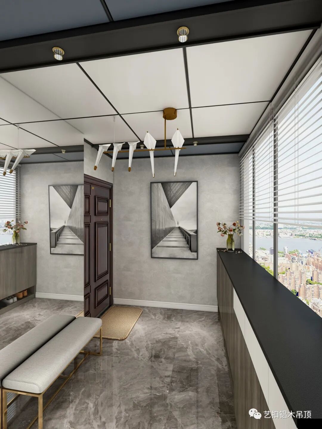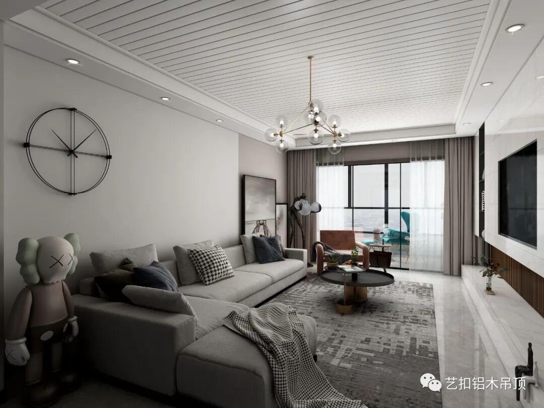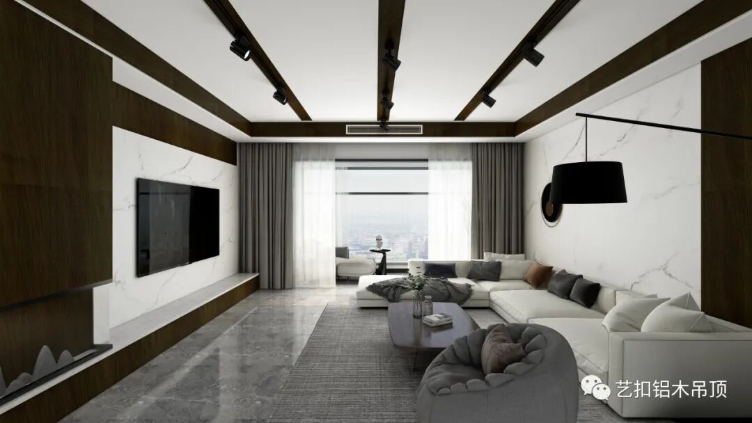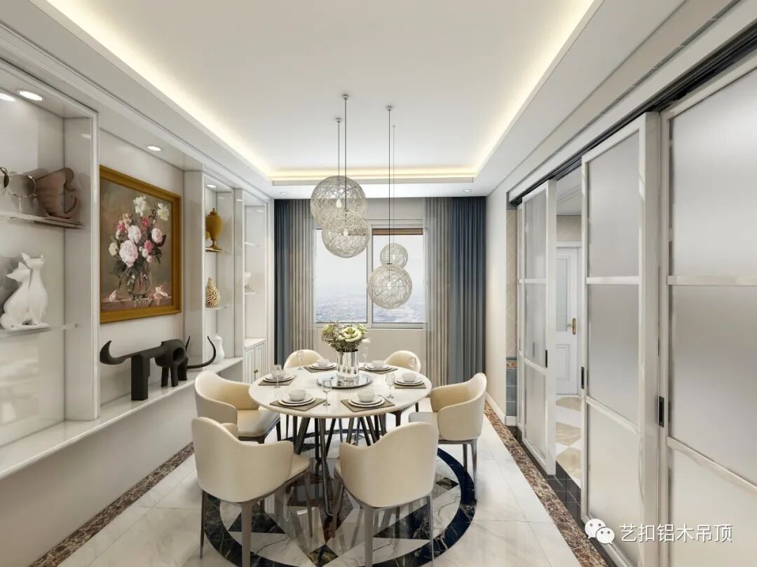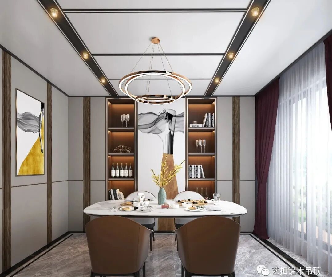 所谓经典,就是永不过时,采用最简洁的顶面造型,搭配线条形的灯具,使整个空间看上去更加大气简约。